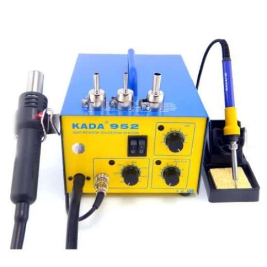 The Kada 952 Dual Digital System SMD/SMT Rework Soldering Station is a high-quality and efficient soldering tool specifically designed for Surface Mount Devices (SMDs) and Surface Mount Technology (SMT) components. It combines a soldering iron and a hot air gun, providing the versatility required for a wide range of soldering and rework tasks.